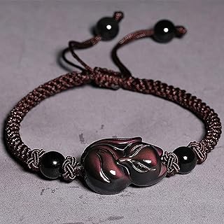 Deykhang Feng Shui Reichtum Armband Regenbogen Obsidian Fox Gott Wohlstand Amulett Heilung Charka Gems natürliches Kristallarmband Talisman für Positivität Liebe Verhältnis Weisheit Geld,Espresso