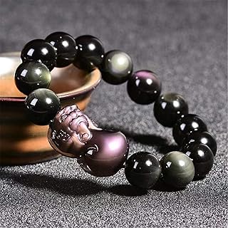 Feng Shui Reichtum Armband natürliche Regenbogen Obsidian Armband Pixiu/Piyao Amulett Armband Wohlstand anziehen viel Glück Geld Liebe Buddha Perlen Jade Armreif Geschenk für Männer/Frauen,12mm