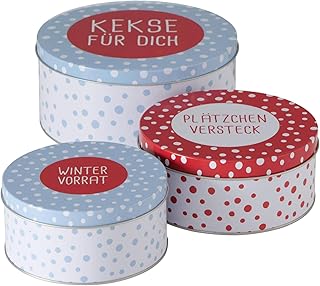 CasaJame 3er Set Metall Keksdose Plätzchendose blau rot weiß mit Spruch Kekse Plätzchen Wintervorrat Sortiert H6-9cm