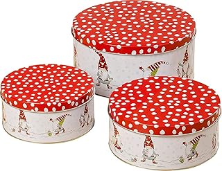 CasaJame 3er Set Metall Keksdose Plätzchendose Weihnachten Wichtel rot weiß Gepunkteter roter Deckel Sortiert H6-9cm