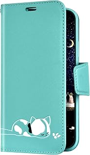Uposao Kompatibel mit Huawei P30 Lite Hülle Leder Wallet Schutzhülle Retro Cute Katze Handy Hülle Brieftasche Hülle Flip Tasche Case Lederhülle Klapphülle Ständer Kartenfächer,Grün