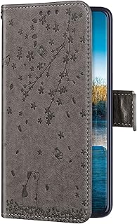 Uposao Kompatibel mit Huawei Mate 20 Lite Hülle Schutzhülle Lederhülle Kirschblüte Blumen Katze Muster Handyhülle Leder Tasche Klapphülle Wallet Flip Case Magnet Ständer Kartenfächer,Grau
