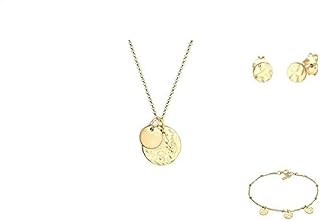 Damen-Ketten mit Anhänger & Anhänger 925 Sterlingsilber vergoldet + Damen-Ohrstecker 925 Sterlingsilber vergoldet 0303441919 + Armband Damen Kreis Plättchen Gehämmert aus 925 Sterling Silber
