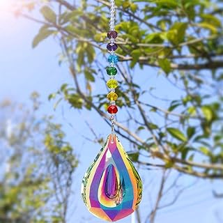 Akemaio Bunter Kristall hängender Anhänger Ornamente mit tropfenförmigem Anhänger Bunter Kristalldekoration Regenbogenfenster Anhänger