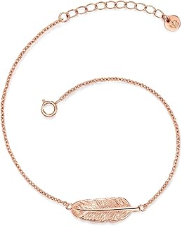 Damen-Silberarmband Feder Sterling Silber rosévergoldet 17,5 + 3,5 cm - Armketten mit Feder-Anhänger roségold vergoldet Freundschaftsarmbänder Silber Armband mit Anhänger