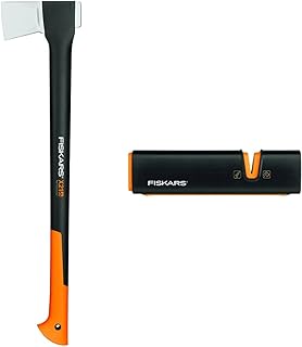 Fiskars Spaltaxt, Inklusive Klingen- und Transportschutz, Länge: 71 cm, Antihaftbeschichtet, Schwarz/Orange, X21–L, 1,63 kg, 1015642 & Axt- und Messerschärfer, Keramik- Schleifkopf, Schwarz/Orange