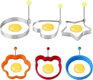 Mousyee Eierringe Antihaft, 6 Stück Egg Rings Antihaft-Eierringe in Verschiedenen Formen mit Klappgriffen Bratform-Eiern Spiegelei-Form Eierkochwerkzeugen für Pfannkuchen-Omelett und Fladenbrot