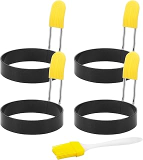 Wovte Eierringe, antihaftbeschichtet, zum Braten von Muffins, Pfannkuchen, Omelette, Crumpets, runde Spiegeleierringe mit einer Silikonbürste, 4 Stück