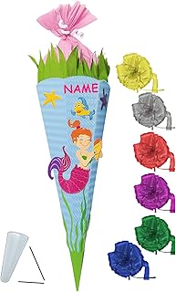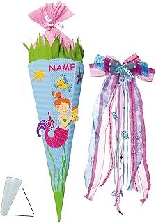 alles-meine.de GmbH BASTELSET Schultüte - Nixe - Meerjungfrau & Fische - 85 cm - incl. Schleife + Name - mit / ohne Kunststoff Spitze - Zuckertüte - Set zum selber Basteln - ..