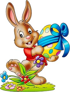 alles-meine.de GmbH Fensterbild _ Motivwahl _ Ostern & Frühling - Osterhase mit Ei - statisch haftend - selbstklebend + wiederverwendbar - Set Sticker Fenstersticker Aufkleber - ..