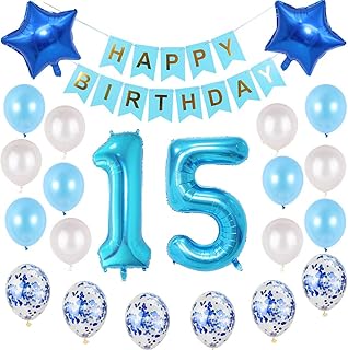 15 Geburtstag Dekoration Luftballons Blau, 15. Geburtstag deko für Jungen,blau Luftballons Zahl 15, Happy Birthday Girlande Banner 15 geburtstag deko blau set,15 jahre junge geburtstagsdeko