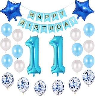11 Geburtstag Dekoration Luftballons Blau, 11. Geburtstag deko für Jungen,blau Luftballons Zahl 11, Happy Birthday Girlande Banner 11 geburtstag deko blau set,11 jahre junge geburtstagsdeko