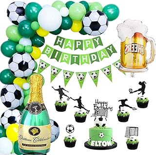 Geburtstagsdeko Jungen, Fußball Geburtstag Dekorationen mit Happy Birthday Girlande Banner Folien Luftballons Cake Topper Fußball Luftballons Kinder Geburtstagsdeko Fußballfan Themenfeier
