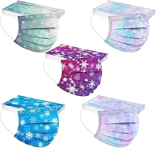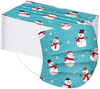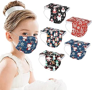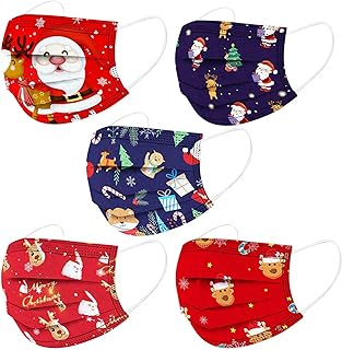 Lulupi 50 Stück Kinder Weihnachten Mundschutz Einweg 3D Druck Mund und Nasenschutz Halstuch Maske Einmal Weihnachtsmaske Weihnachtsmotiv 3-lagig MNS Mund-Tuch Atmungsaktiv Tücher Bandana Schals
