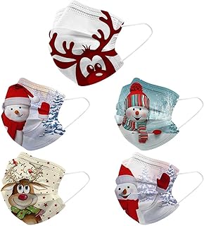Lulupi 10 Stück Erwachsene Weihnachten Mundschutz Einweg 3D Druck Mund und Nasenschutz Halstuch Maske Einmal Weihnachtsmaske Weihnachtsmotiv 3-lagig MNS Mund-Tuch Atmungsaktiv Tücher Bandana Schals
