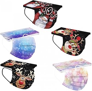 MEIYOUMK 50 Stück Einweg Erwachsene Mundschutz Weihnachtsmotiv Mund und Nasenschutz Halstuch Maske 3D Druck Weihnachtsmaske Elch Motiv MNS Mund-Tuch Staubdicht Atmungsaktiv Tücher Bandana Schals