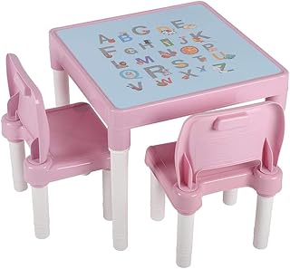 Kinder Tisch Stuhl Set, Kindertisch & 2 Stühle, Kindersitzgruppe mit ABC Alphabet Lernen Kindertisch-Set Tisch für Zuhause, Kindergarten Zimmer Möbel