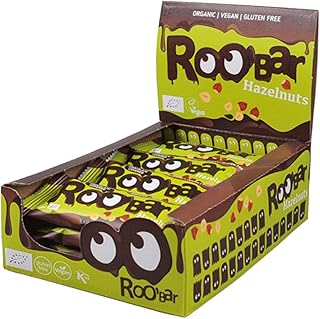 Roobar Haselnuss-Riegel mit Schokoladenüberzug – 100% Bio, Vegan, Fruchtriegel, milchfrei & glutenfrei, ohne raffinierten Zucker - 16 x 30g Riegel