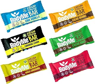 BodyMe Bio Vegan Protein Riegel | Gemischtes Testpaket | 6 x 60g Vegane Proteinriegel | Glutenfrei | 16g Komplette Veganes Protein pro Snack | 3 Proteine | Essentiellen Aminosäuren | Fitness Riegel