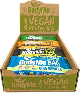 BodyMe Bio Vegan Protein Riegel | Gemischt Schachte | 12 x 60g Vegane Proteinriegel | Glutenfrei | 16g Komplette Veganes Protein pro Snack | 3 Proteine | Essentiellen Aminosäuren | Fitness Riegel