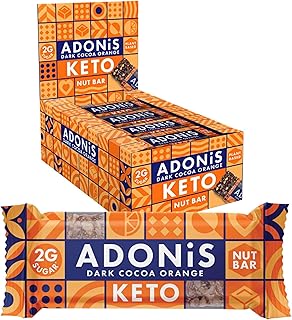 Adonis Keto Riegel | Schokolade & Orange Snack Riegel | 100% Natürliche Nuss Snacks, Low Carb, Vegan, Glutenfrei, Low Sugar, Paleo Bars - 16er Box