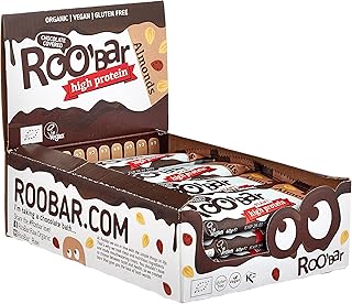 Roobar High Protein Mandel-Riegel mit Schokoladenüberzug – 100% Bio, Vegan, Fruchtriegel, milchfrei & glutenfrei, ohne raffinierten Zucker - 16 x 40g Riegel