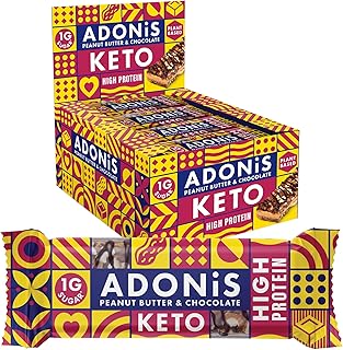 Adonis Keto Protein Riegel | Erdnussbutter & Schokolade Snack Riegel | 100% Natürliche Nuss Snacks, Low Carb, Vegan, Low Sugar Bars - 16er Box