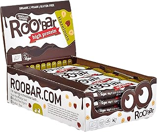 Roobar High Protein Haselnuss-Riegel mit Schokoladenüberzug – 100% Bio, Vegan, Fruchtriegel, milchfrei & glutenfrei, ohne raffinierten Zucker - 16 x 40g Riegel